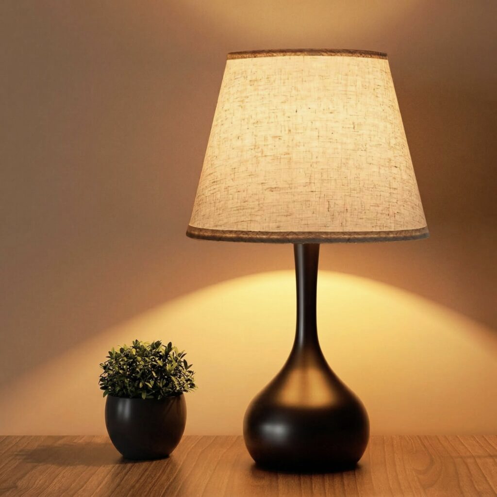 Warm linen lamp for cozy minimalist bedside ambiance.
