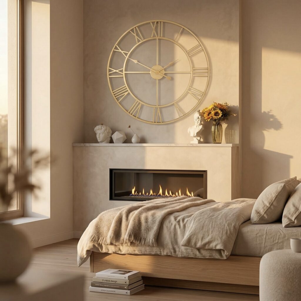 Soft lighting and refined accents that bring warmth and calm bedside.