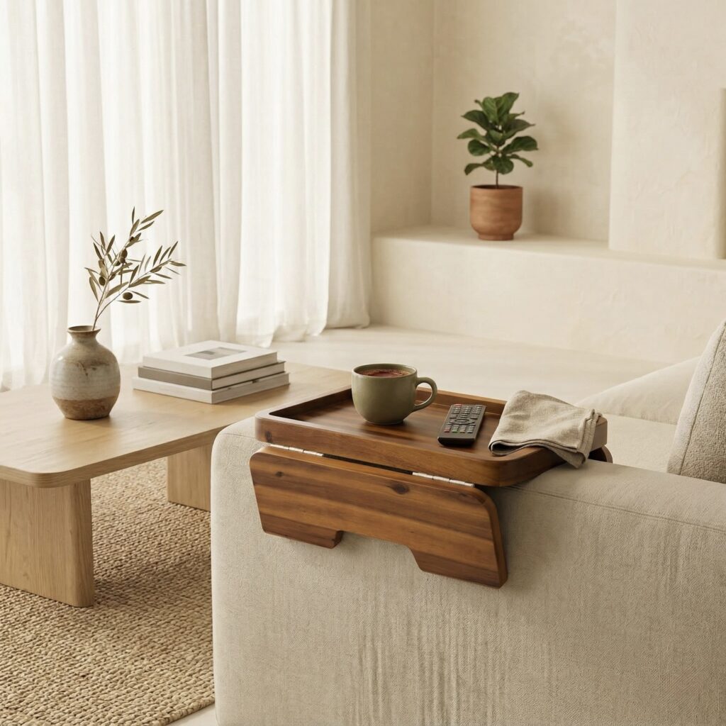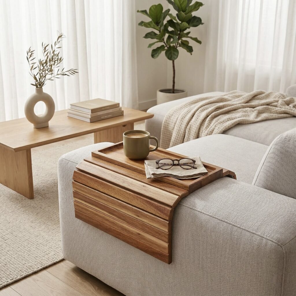 Natural wood tray that keeps your essentials within reach
