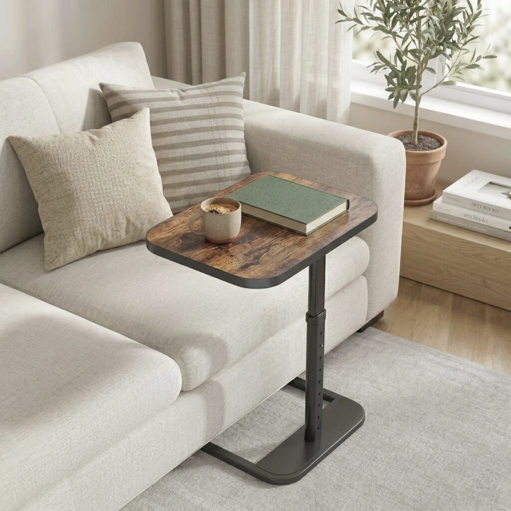 Smart C-shaped table that slides in for effortless comfort